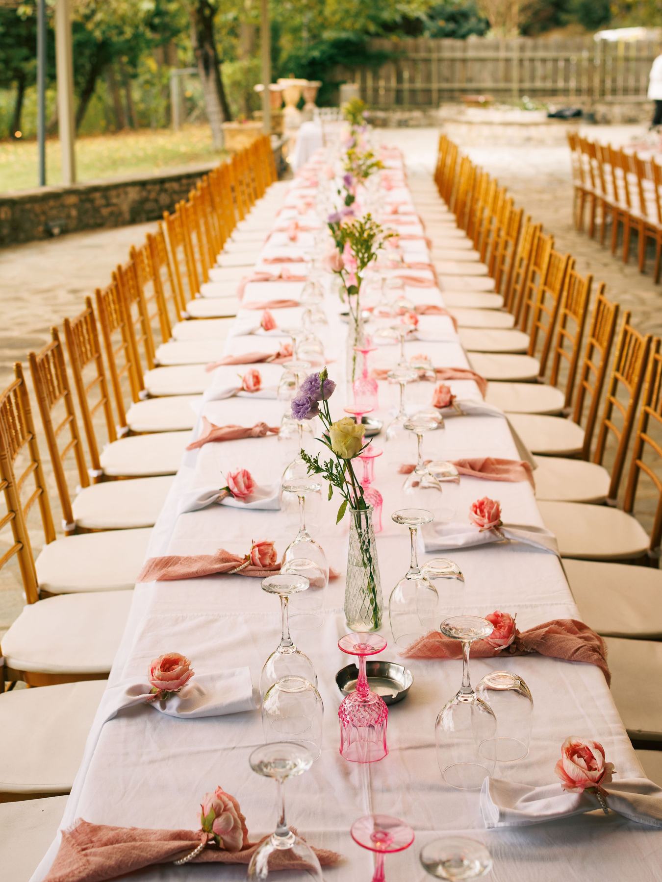- Ο χώρος υποδοχής και η ανθοστόλιστη αψίδα “Welcome Κωνσταντίνα” τοποθετήθηκαν σε σημείο που αναδείκνυε τη φυσική πέτρα και τη βλάστηση, ενσωματώνοντας τη διακόσμηση στο τοπίο αντί να το ανταγωνίζονται.